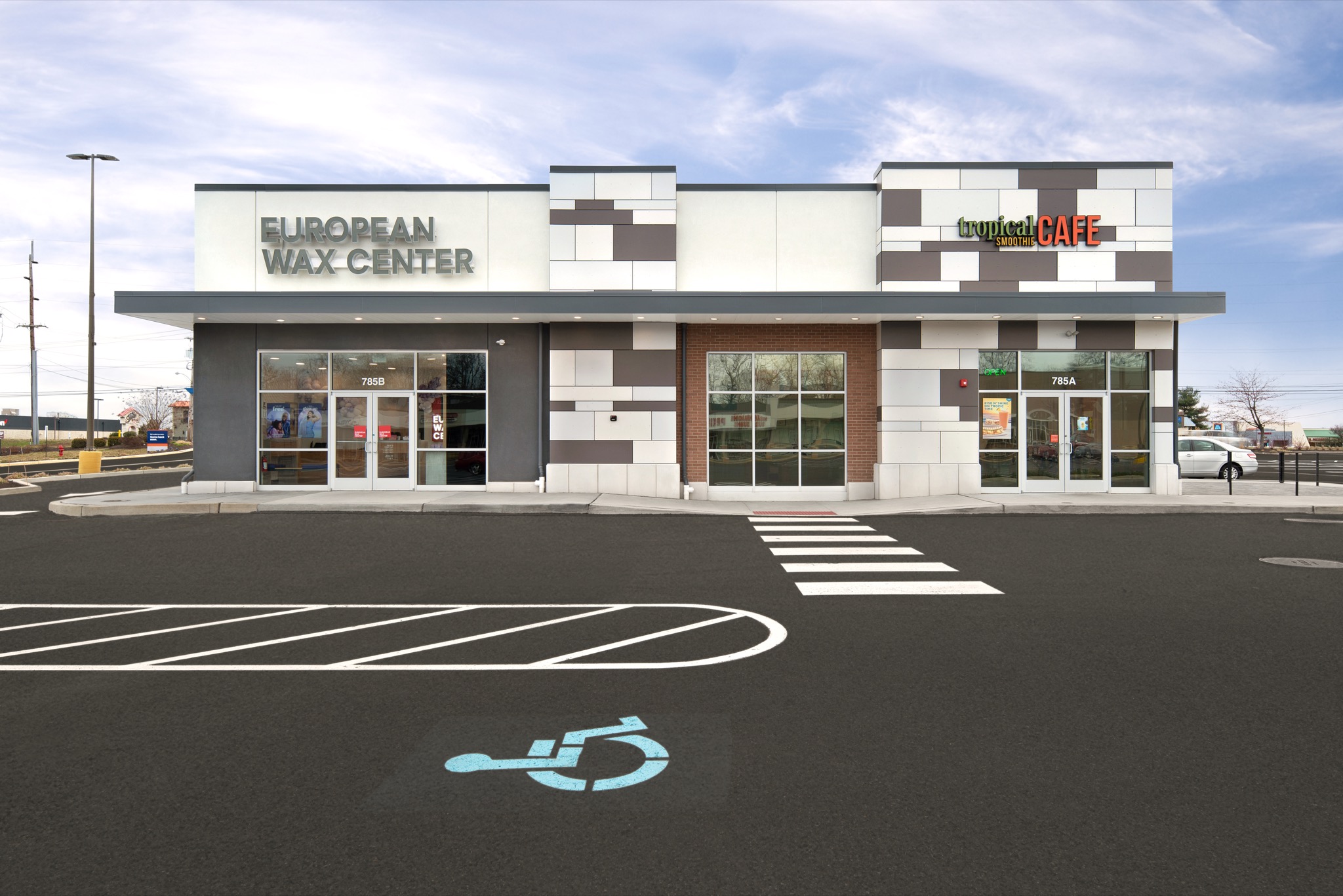 New construction of a 1-story, 4,500 SF building demised for Brixmor Property Group and their national vendors, European Wax Center and Tropical Smoothie. This also included the tenant fit-out package for Tropical Smoothie.