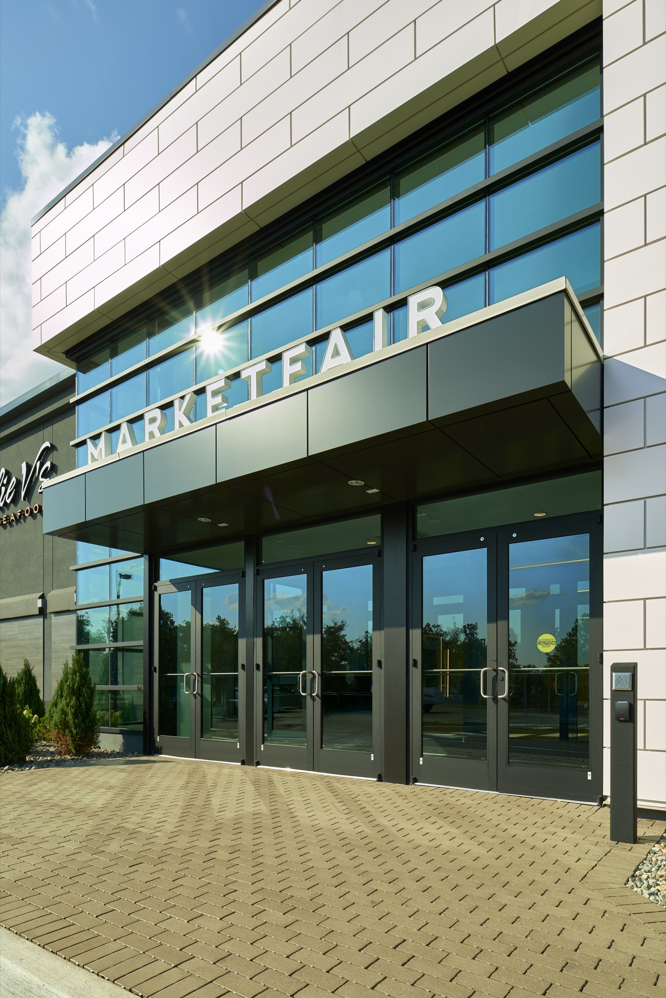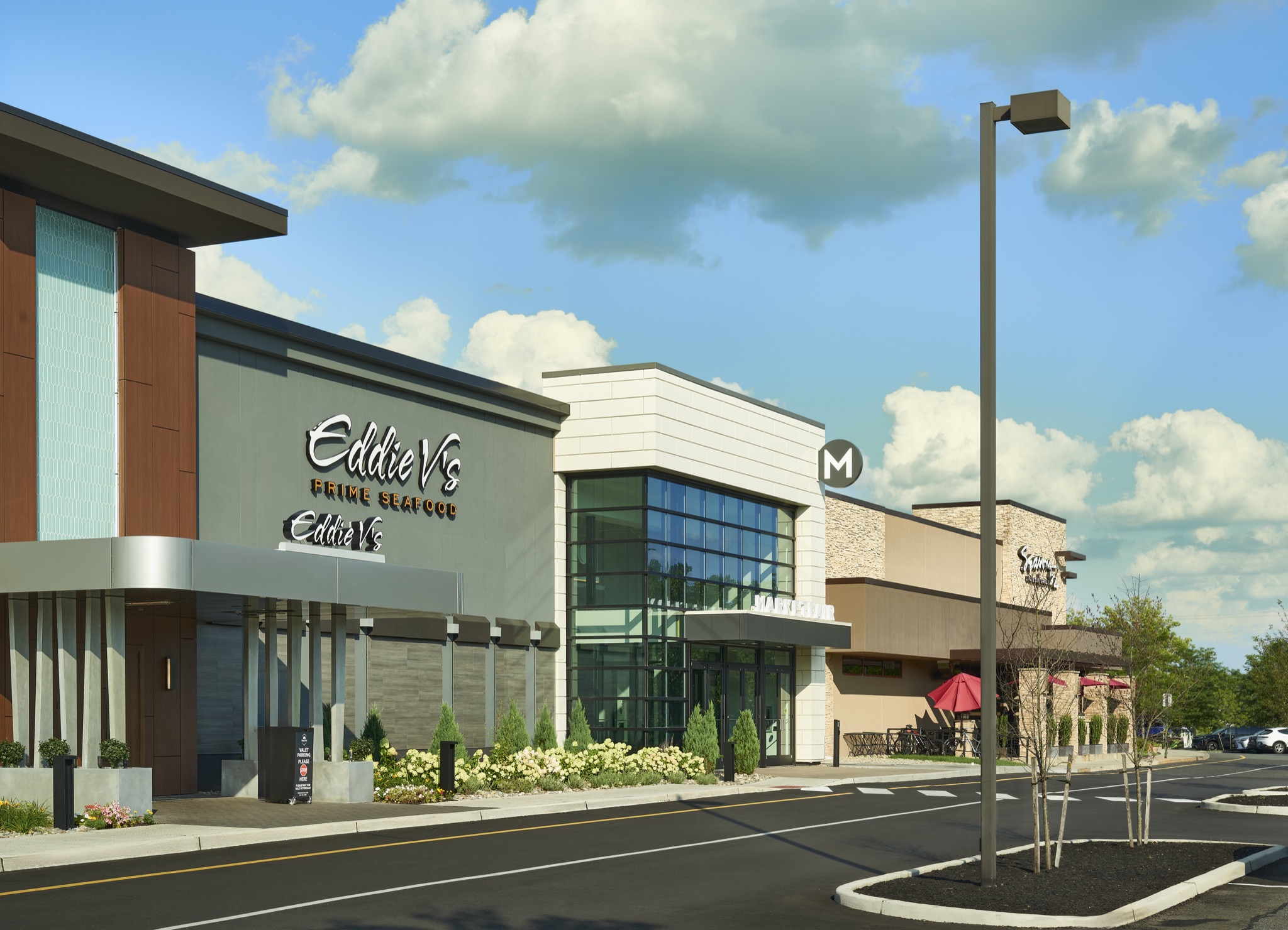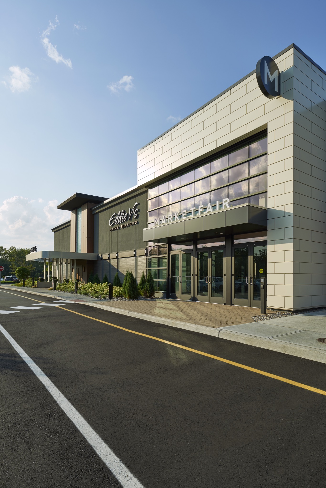 Phase one of ‘Market Fair’ mall redevelopment for Centennial Properties, inclusive of their upgraded primary mall entrance, exterior façade improvements, and site redevelopment for Eddie V’s Steakhouse.